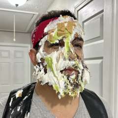 MessyMegan was surprised by theoldmanandthepie with a big sloppy cream pie to the face