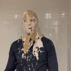 Pieceofcake was surprised by JoshCakeFace with a big sloppy cream pie to the face